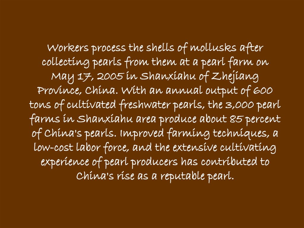 of China's pearls. Improved farming techniques, a