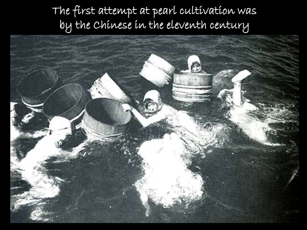 The first attempt at pearl cultivation wasby the Chinese in the eleventh century