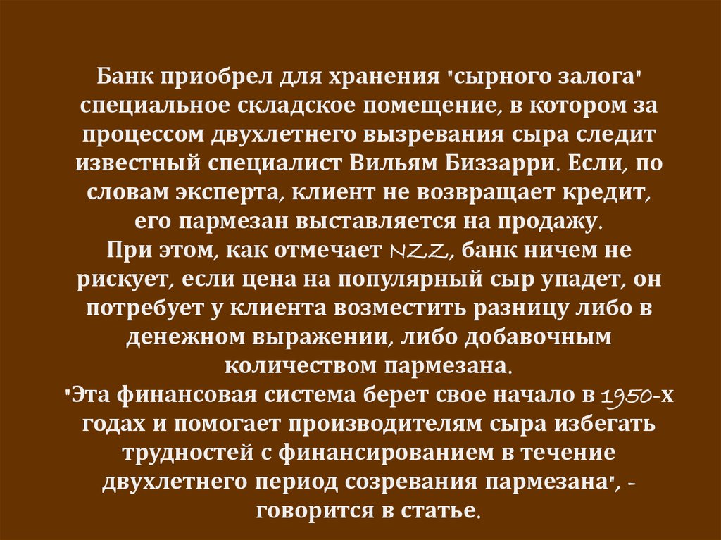 двухлетнего период созревания пармезана", говорится в статье.