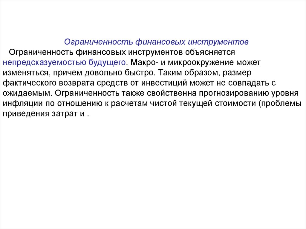 Ограниченность финансовых инструментовОграниченность финансовых инструментов объясняется
