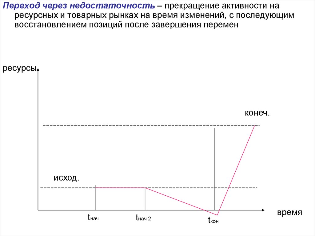 Переход через недостаточность – прекращение активности наресурсных и товарных рынках на время изменений, с последующим