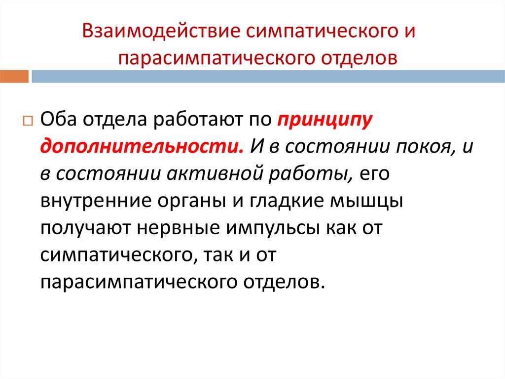 Взаимодействие симпатического ипарасимпатического отделов