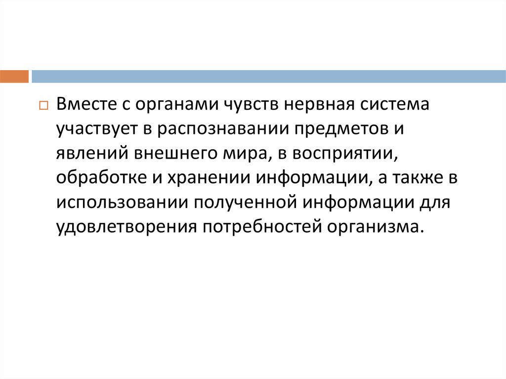 Вместе с органами чувств нервная системаучаствует в распознавании предметов и