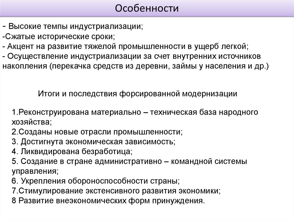 Итоги и последствия форсированной модернизации