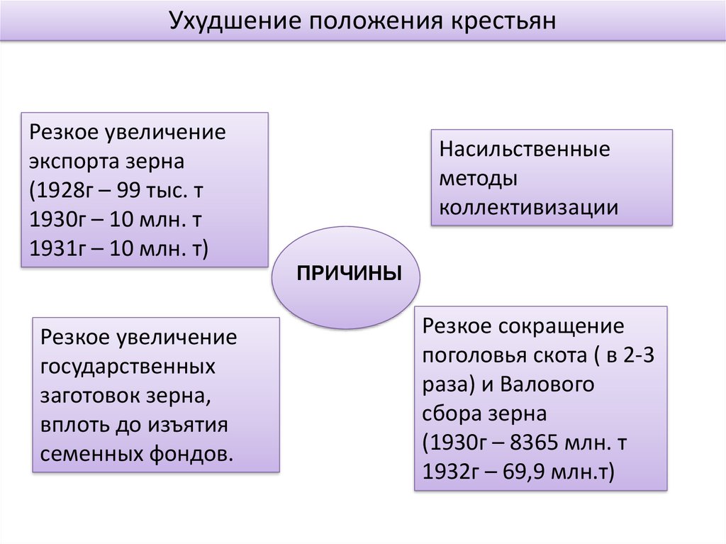 Ухудшение положения крестьянРезкое увеличение