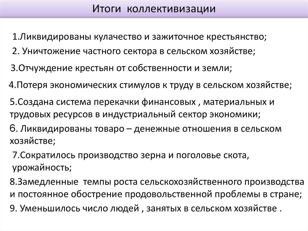 9. Коллективизация итоги и результаты