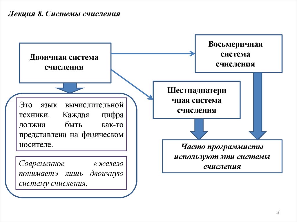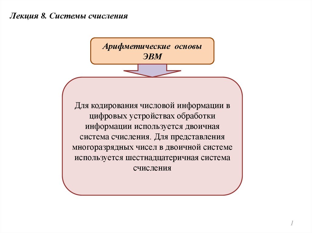 Лекция 8. Системы счисленияАрифметические основы