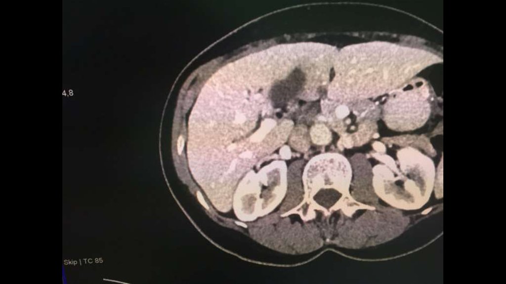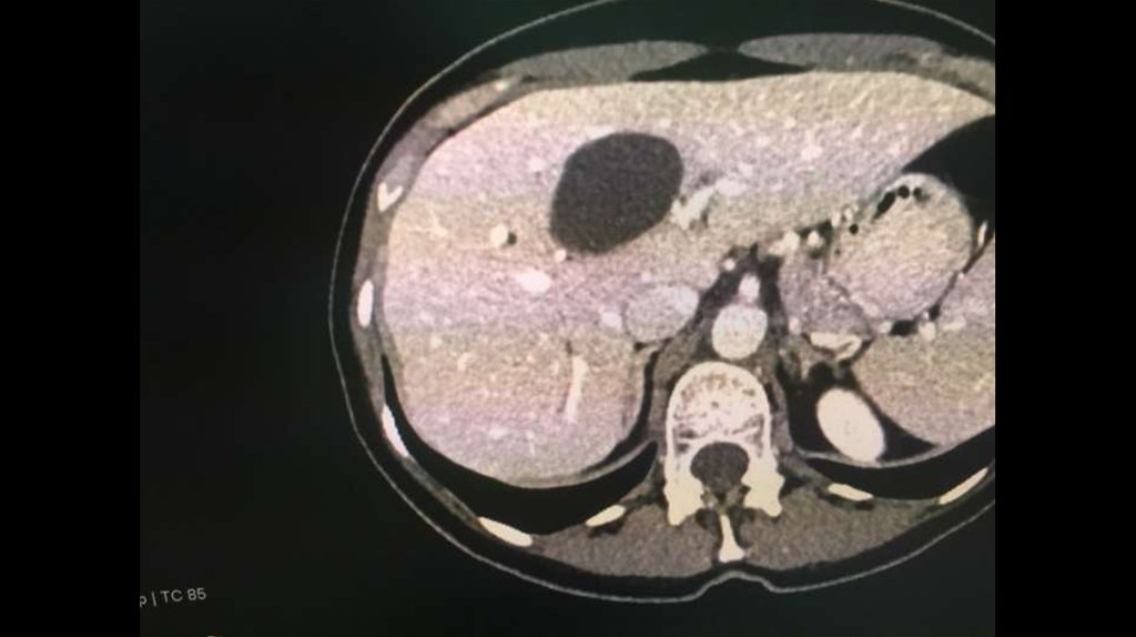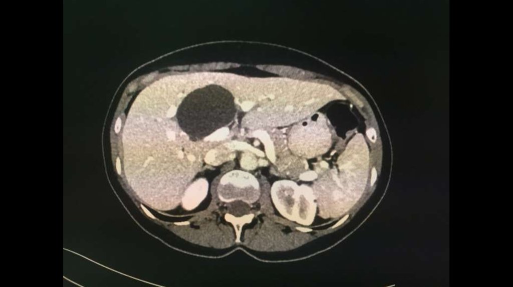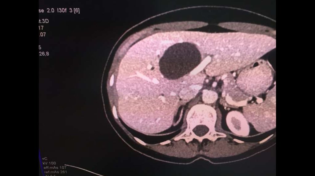 Пациенту в плановом порядке выполнено КТ ОБП. По результатам исследования выявлена
