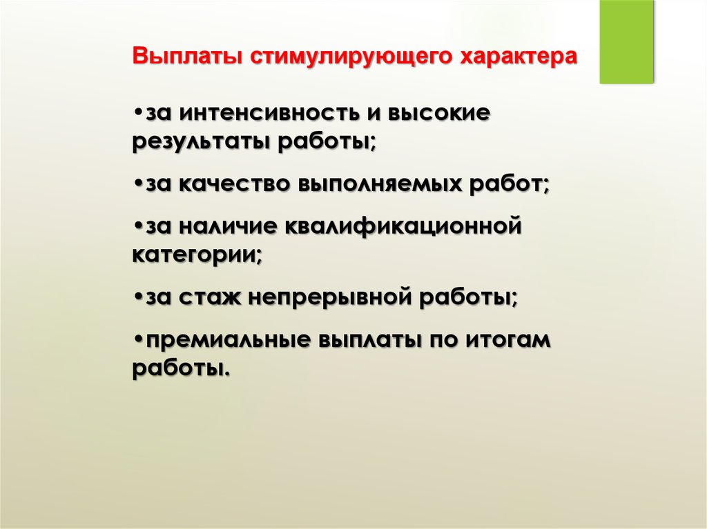 Выплаты стимулирующего характера•за интенсивность и высокие