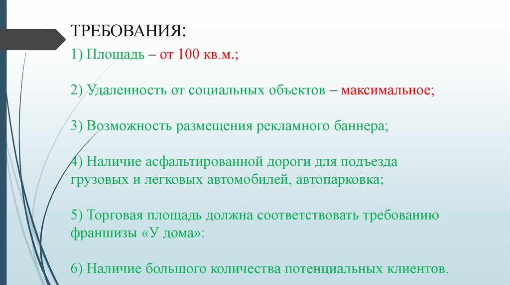 5) Торговая площадь должна соответствовать требованию
