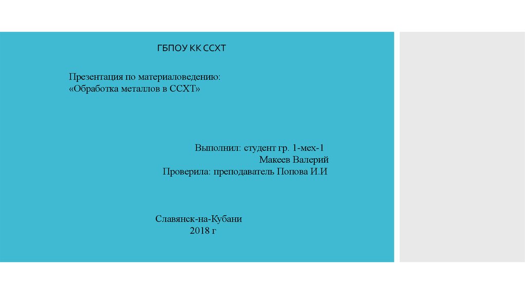 ГБПОУ КК ССХТПрезентация по материаловедению: