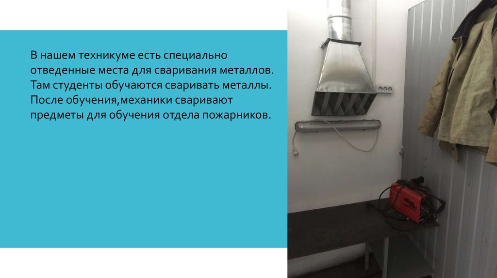В нашем техникуме есть специальноотведенные места для сваривания металлов.