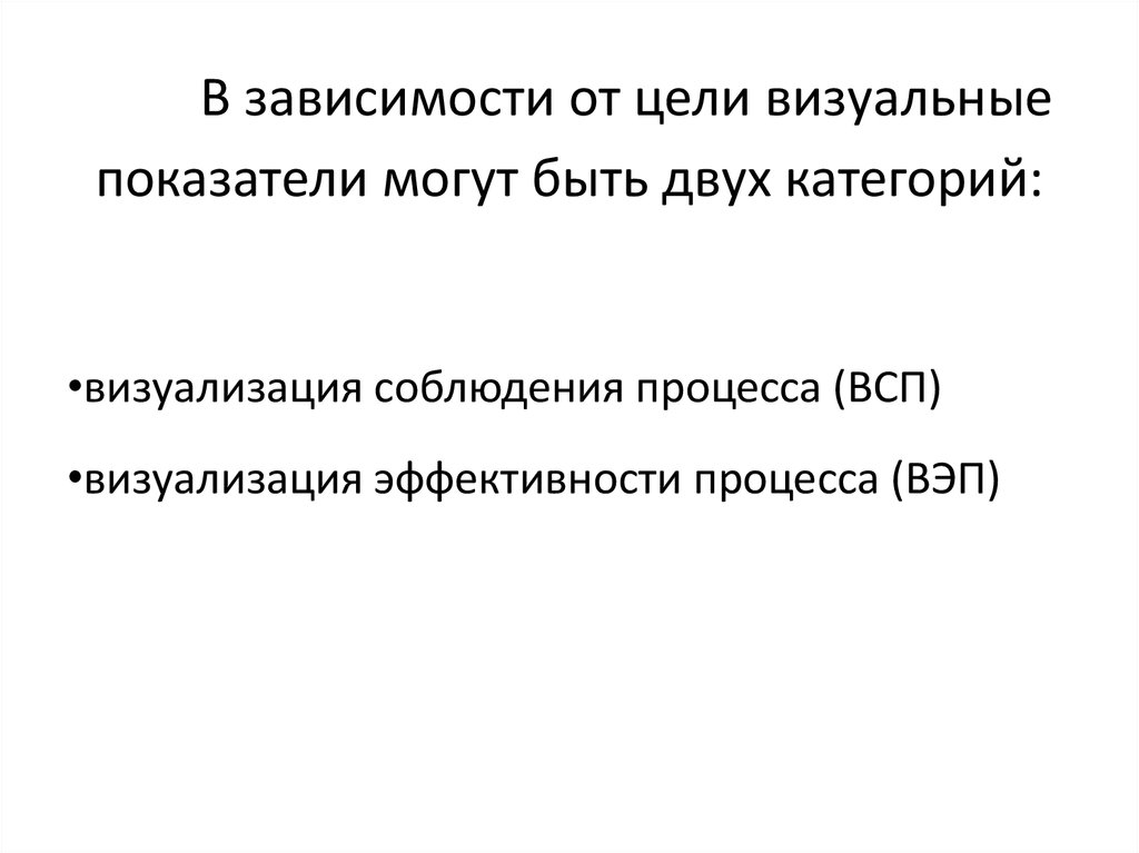 В зависимости от цели визуальныепоказатели могут быть двух категорий: