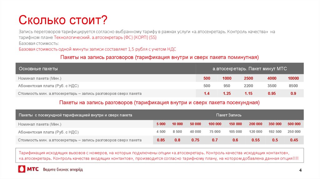 Сколько стоит?Запись переговоров тарифицируется согласно выбранному тарифу в рамках услуги «а.втосекретарь. Контроль качества» на