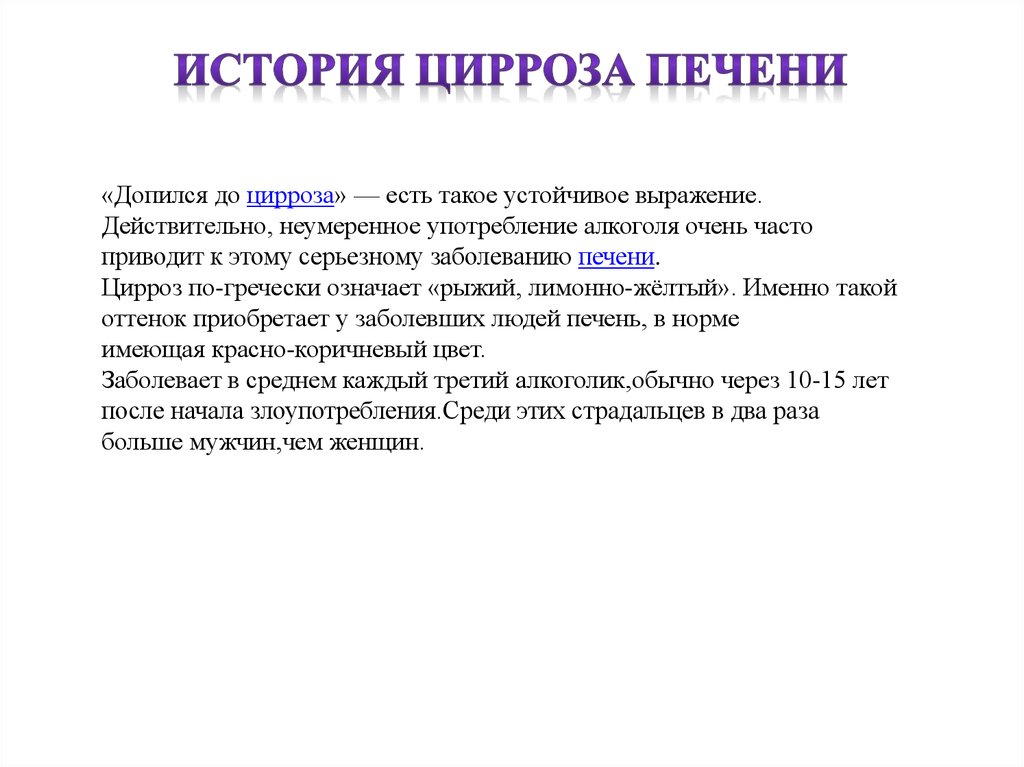 Цирроз по-гречески означает «рыжий, лимонно-жёлтый». Именно такой