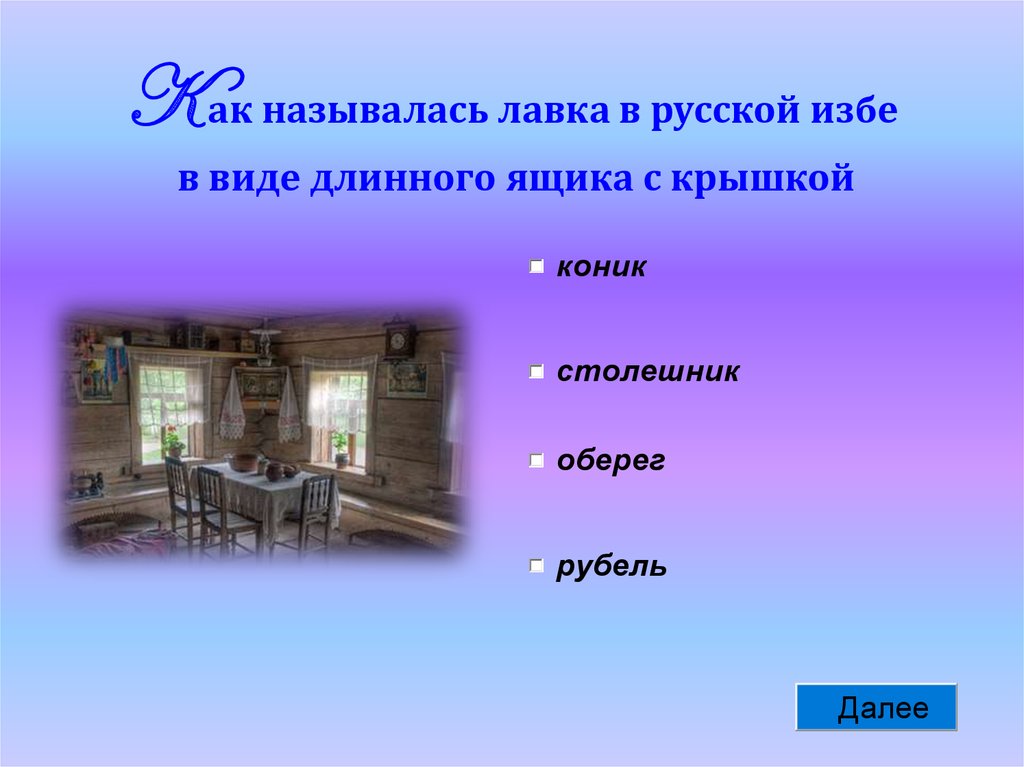 K ак называлась лавка в русской избев виде длинного ящика с крышкой