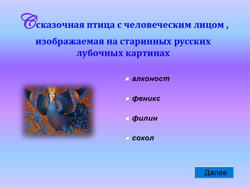 C сказочная птица с человеческим лицом ,изображаемая на старинных русских