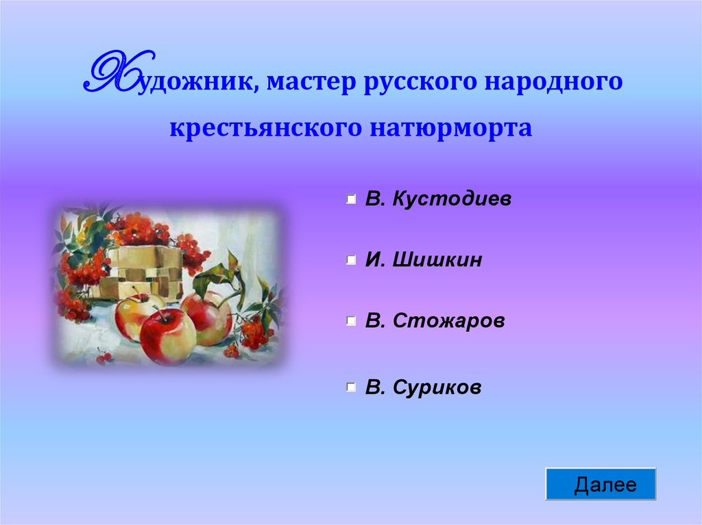 Xудожник, мастер русского народногокрестьянского натюрморта