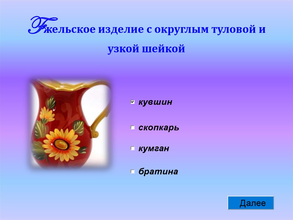 Fжельское изделие с округлым туловой иузкой шейкой