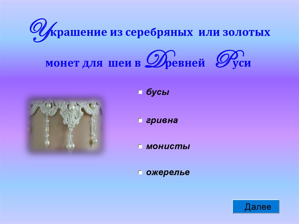 Yкрашение из серебряных или золотыхмонет для шеи в Dревней Pуси