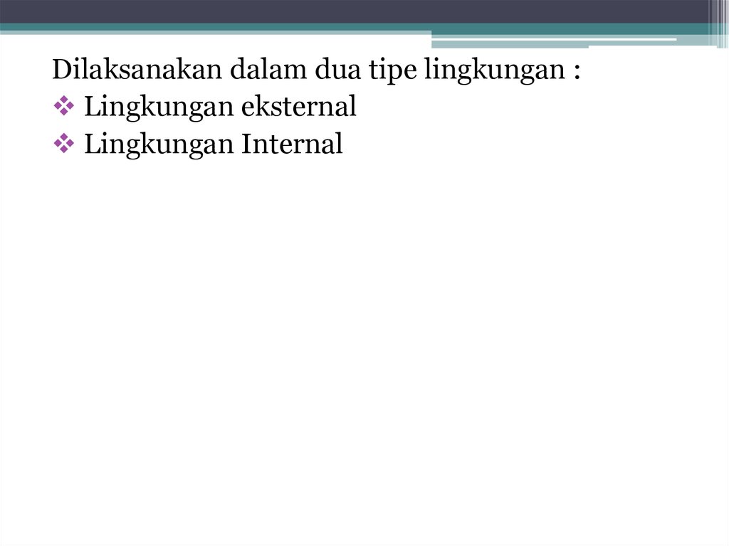 Dilaksanakan dalam dua tipe lingkungan :Lingkungan eksternal