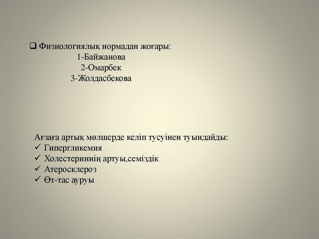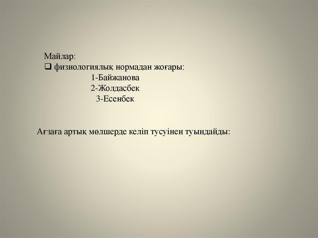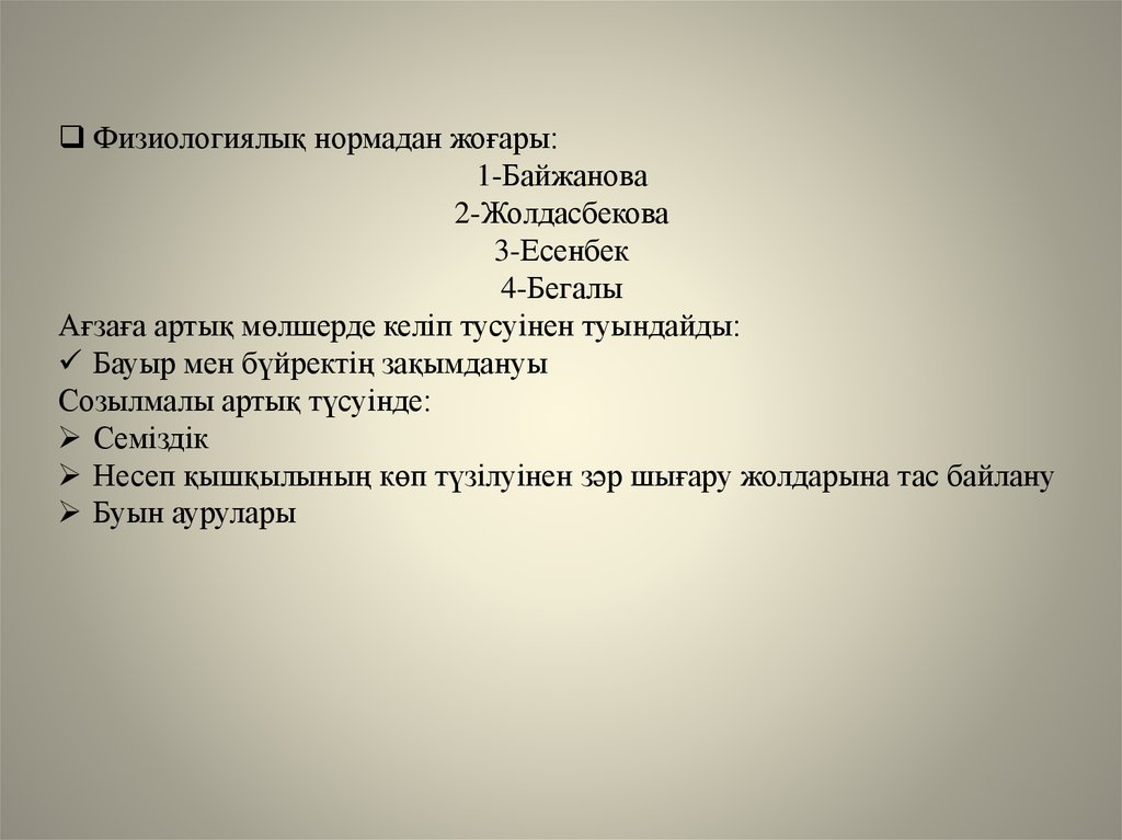Физиологиялық нормадан жоғары:1-Байжанова