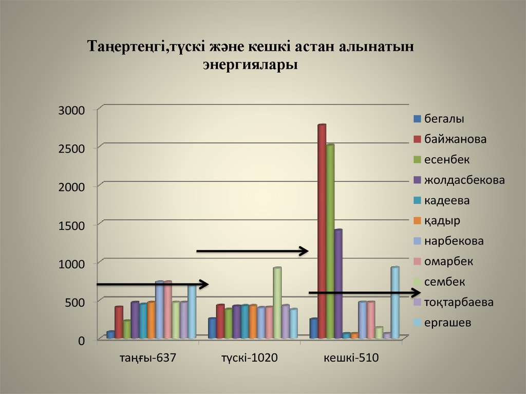 Таңертеңгі,түскі және кешкі астан алынатынэнергиялары