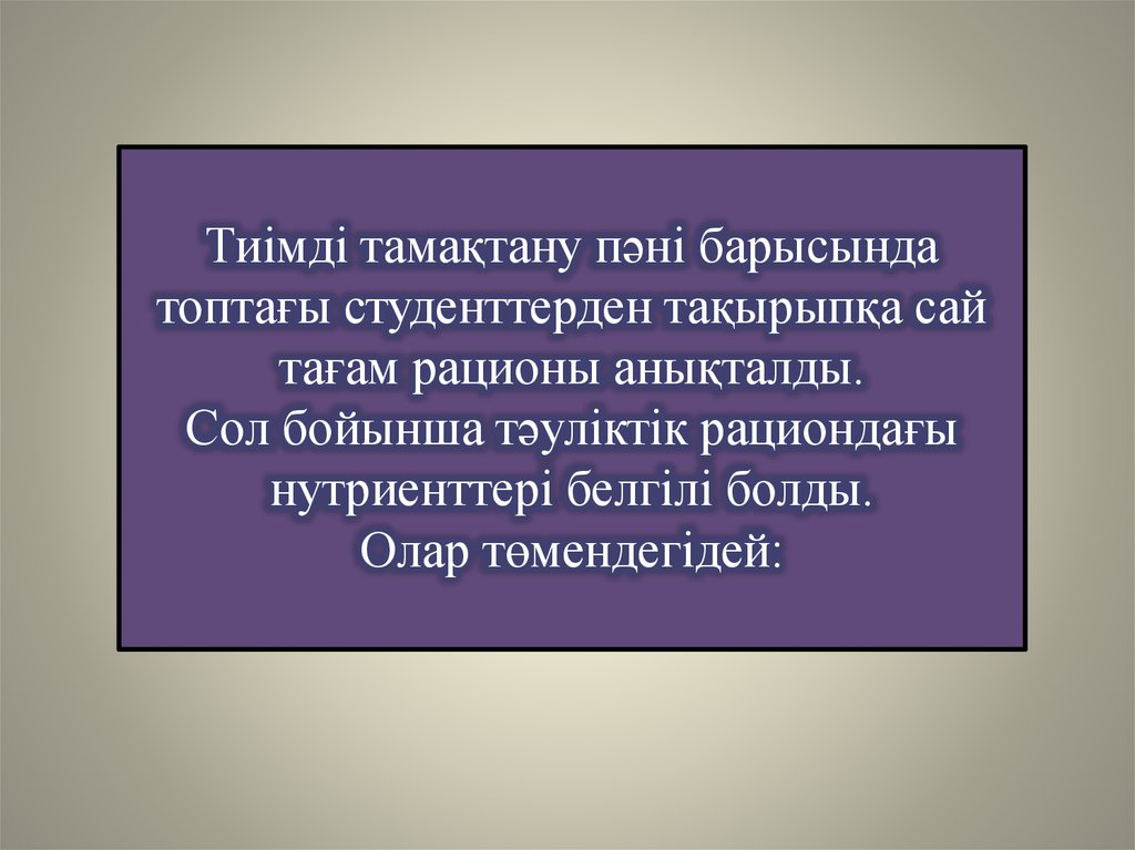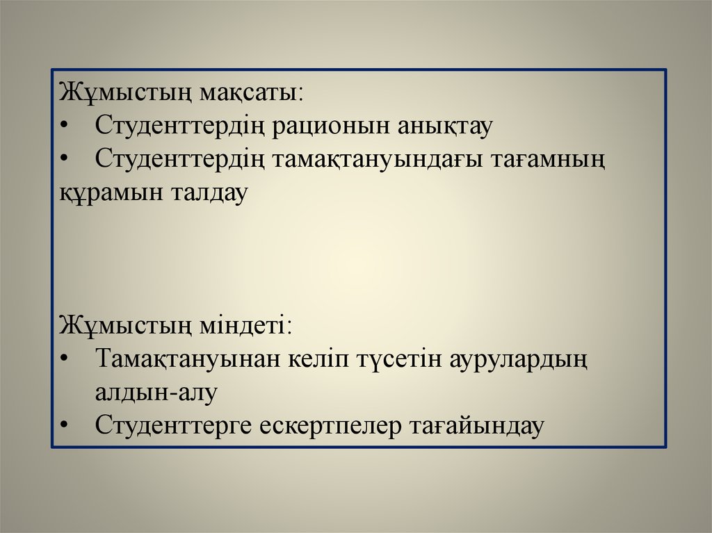 Жұмыстың мақсаты:• Студенттердің рационын анықтау