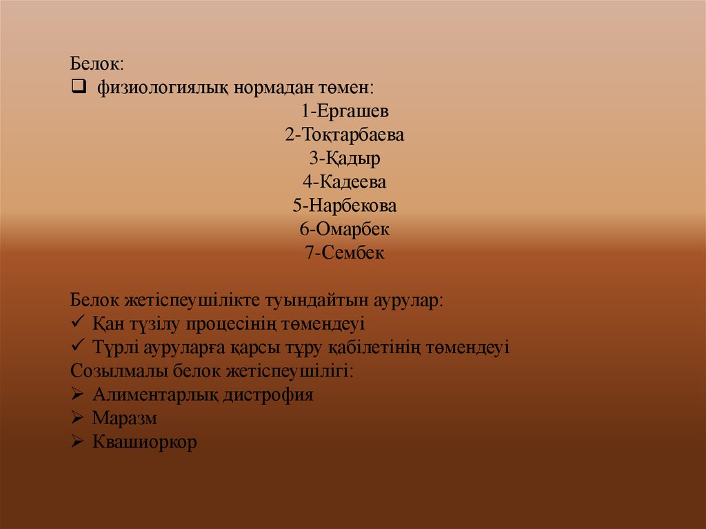 Белок жетіспеушілікте туындайтын аурулар: