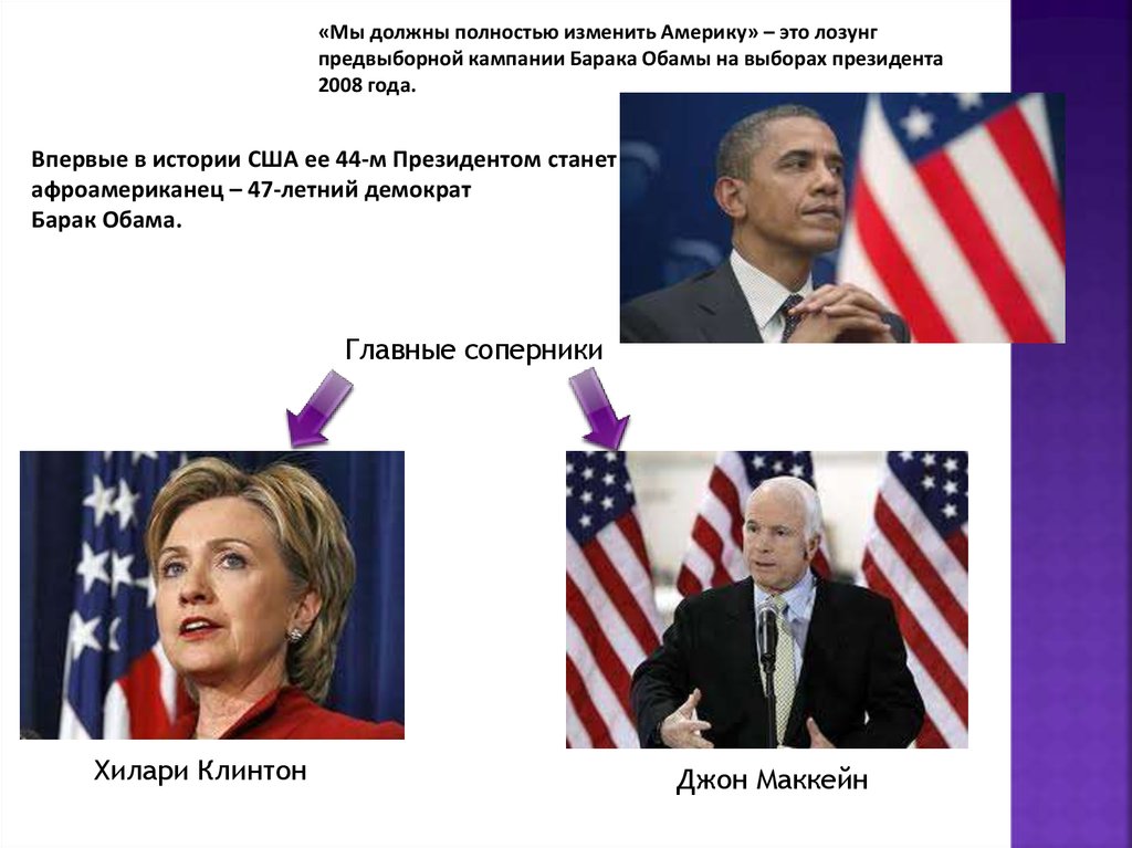 «Мы должны полностью изменить Америку» – это лозунгпредвыборной кампании Барака Обамы на выборах президента