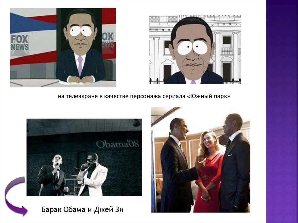 на телеэкране в качестве персонажа сериала «Южный парк»Барак Обама и Джей Зи