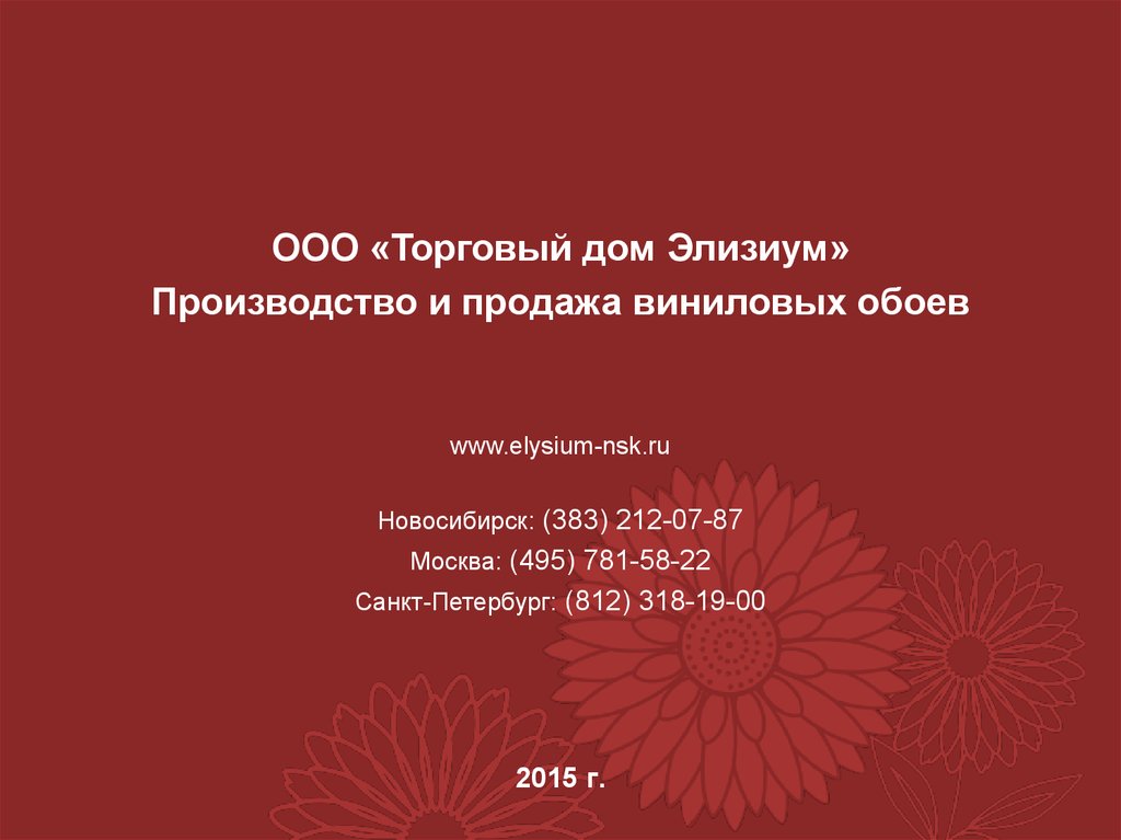 ООО «Торговый дом Элизиум»Производство и продажа виниловых обоев