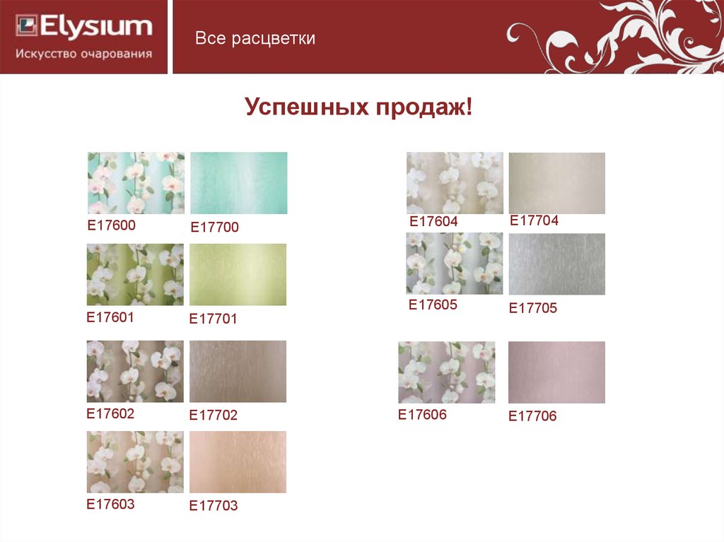 Коллекция: «Орхидея»Артикулы: E176ХХ, E177ХХ,