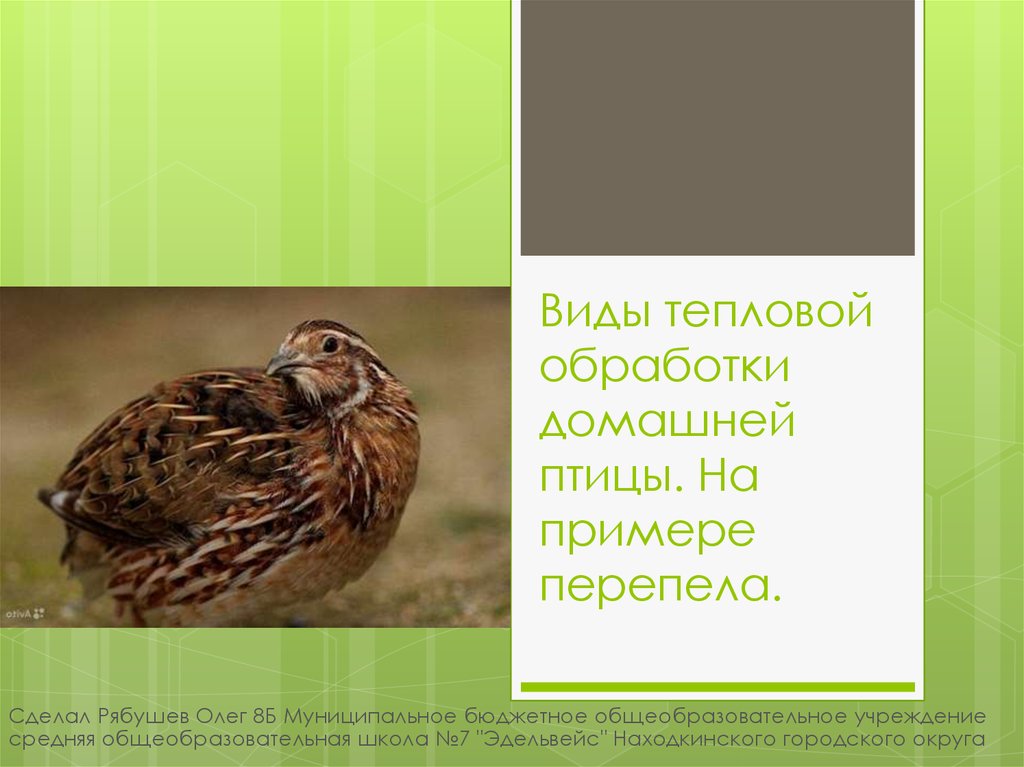 1. Виды тепловой обработки домашней птицы. На примере перепела.