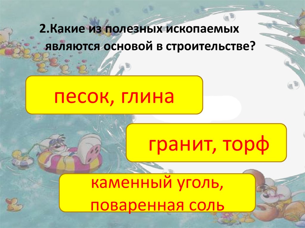 2.Какие из полезных ископаемыхявляются основой в строительстве?