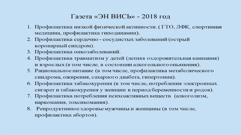 «Газета ЭН-ВИСЬ 2018» - это междисциплинарное иколлективное решение вопросов профилактики