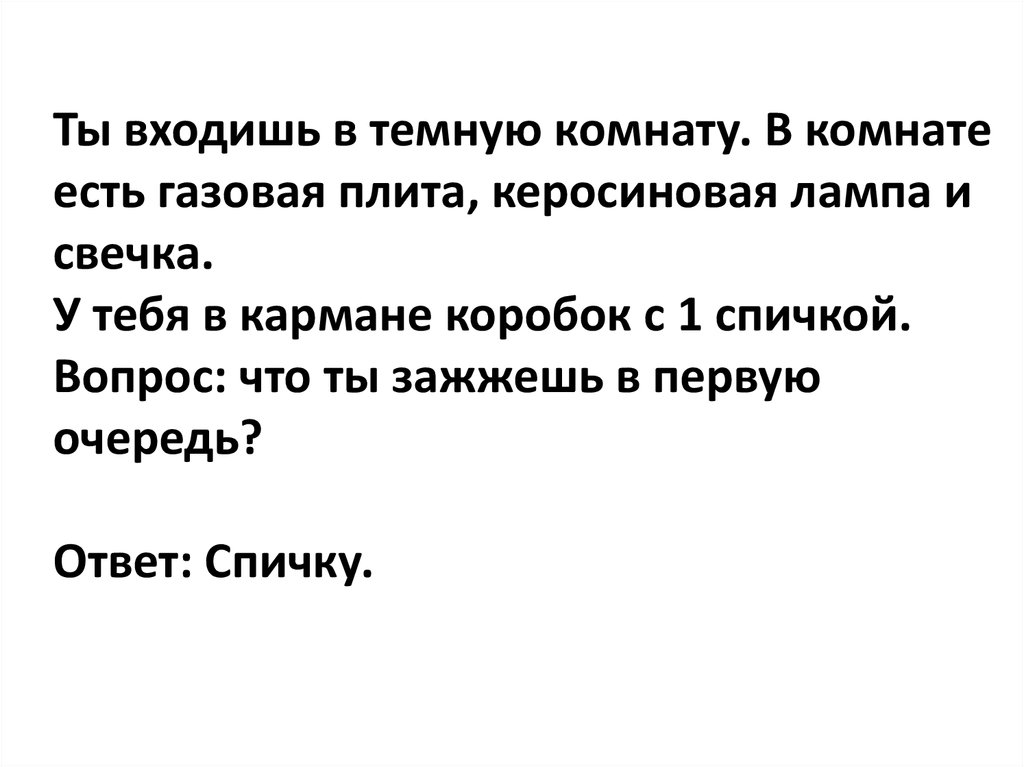 Ты входишь в темную комнату. В комнатеесть газовая плита, керосиновая лампа и