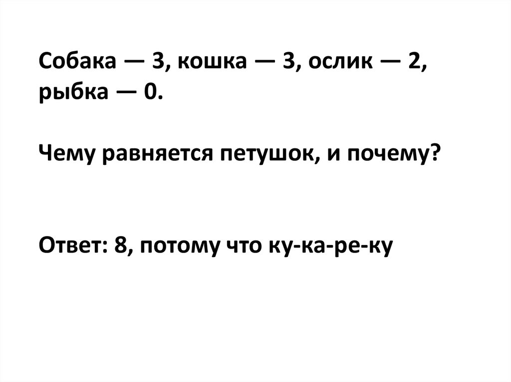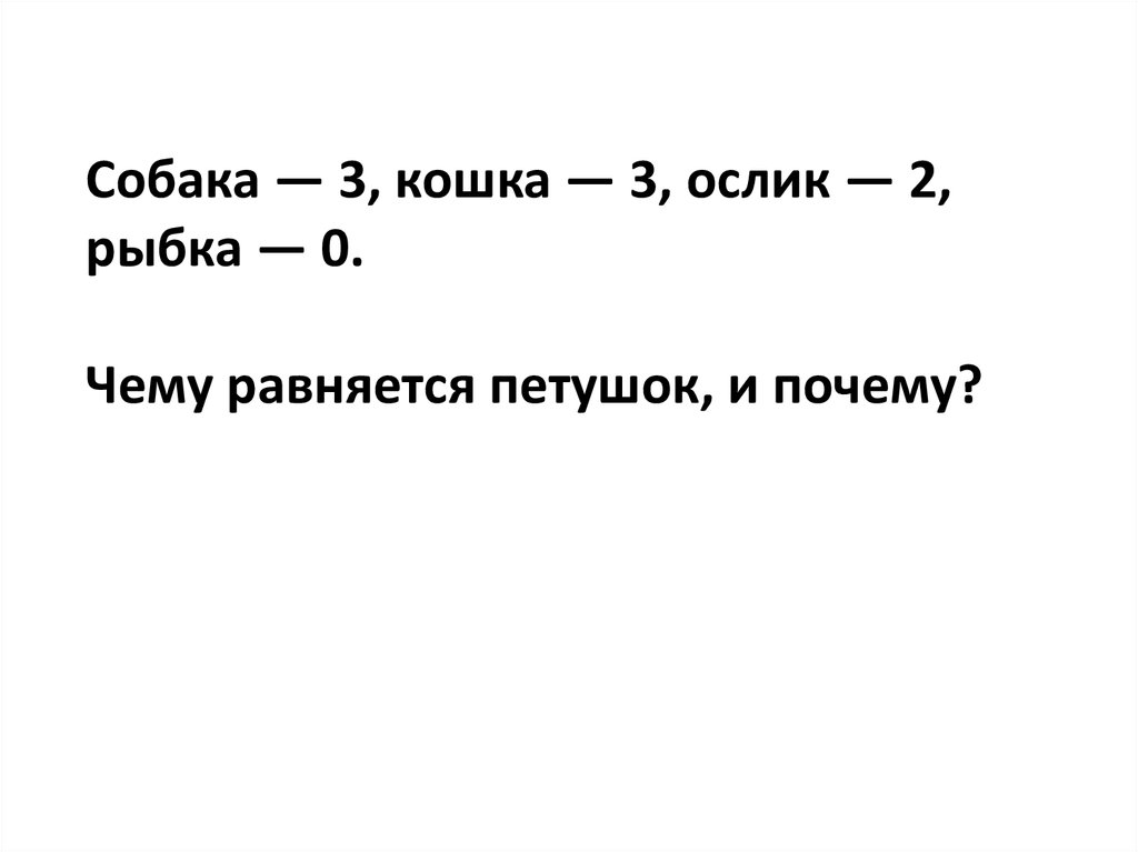 Собака — 3, кошка — 3, ослик — 2,рыбка — 0.