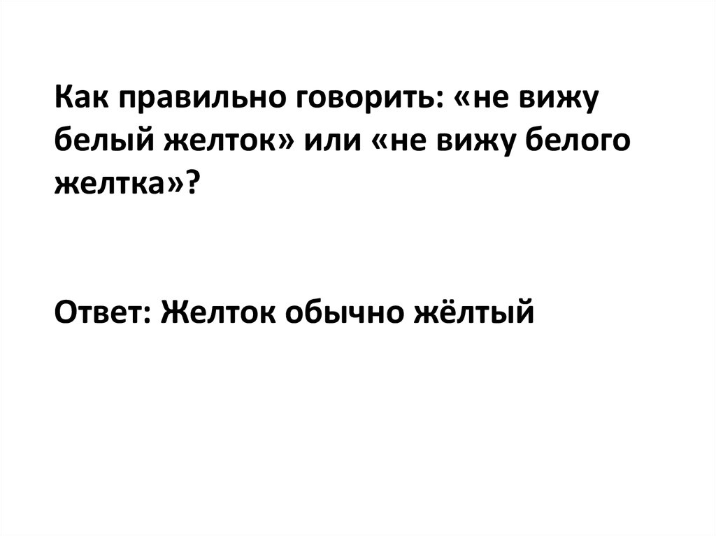 Как правильно говорить: «не вижубелый желток» или «не вижу белого