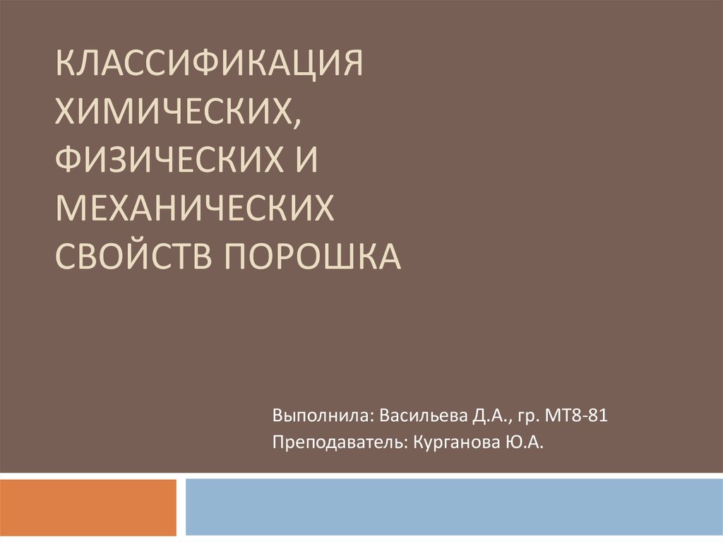 1. Классификация химических, физических и механических свойств порошка