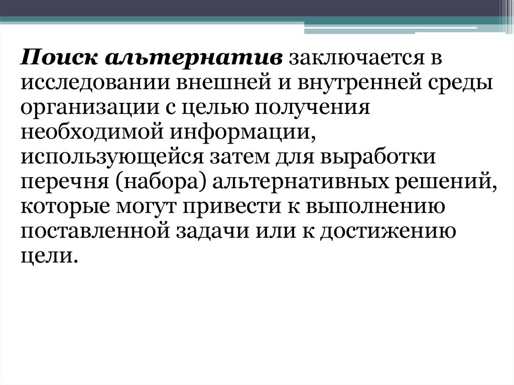 Поиск альтернатив заключается висследовании внешней и внутренней среды