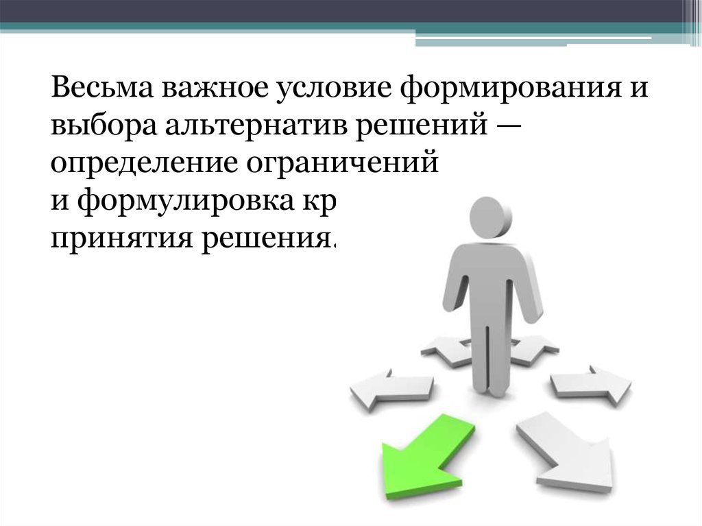 Весьма важное условие формирования ивыбора альтернатив решений —