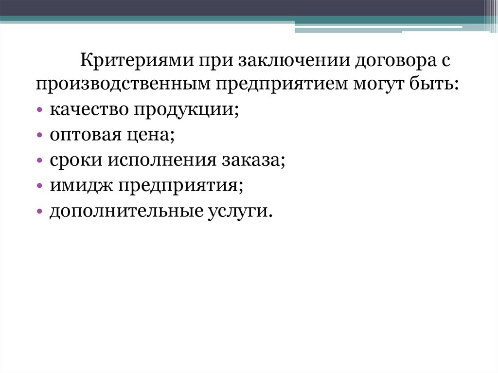 Критериями при заключении договора спроизводственным предприятием могут быть: