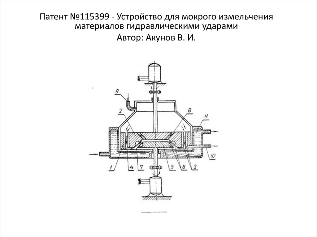 Патент №115399 - Устройство для мокрого измельченияматериалов гидравлическими ударами