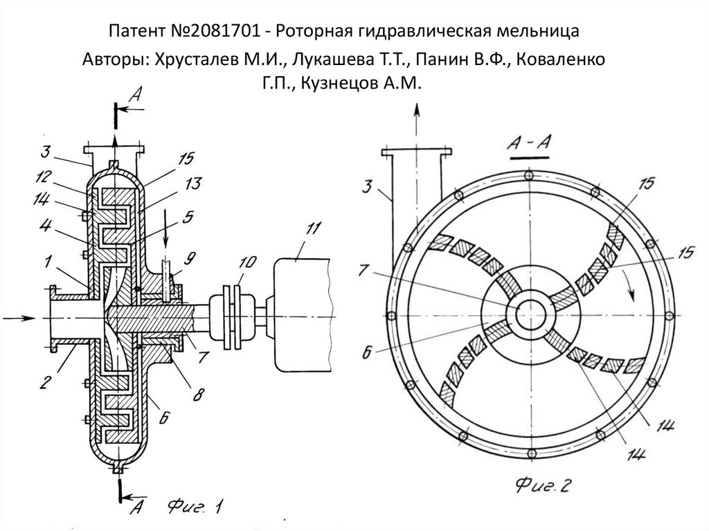 Патент №2081701 - Роторная гидравлическая мельницаАвторы: Хрусталев М.И., Лукашева Т.Т., Панин В.Ф., Коваленко