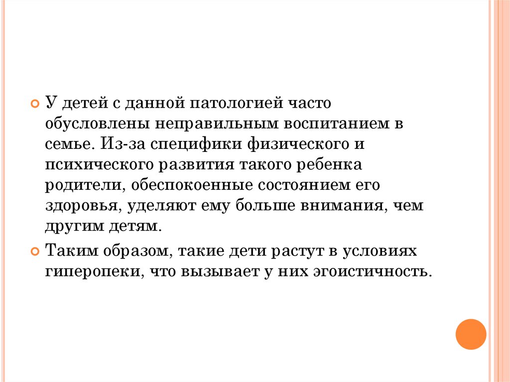 У детей с данной патологией частообусловлены неправильным воспитанием в