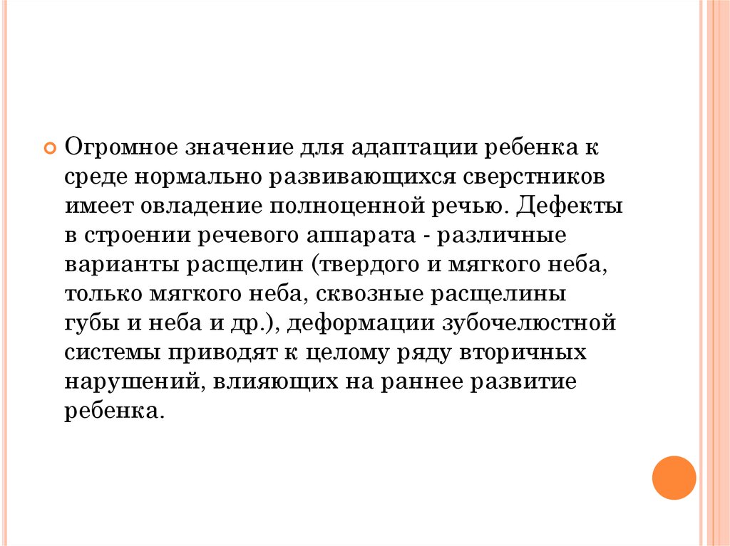 1. Специфические особенности воспитания детей с врождёнными расщелинами.