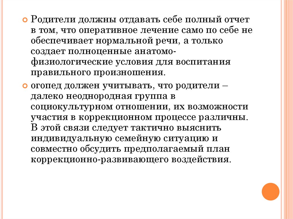 огопед должен учитывать, что родители –