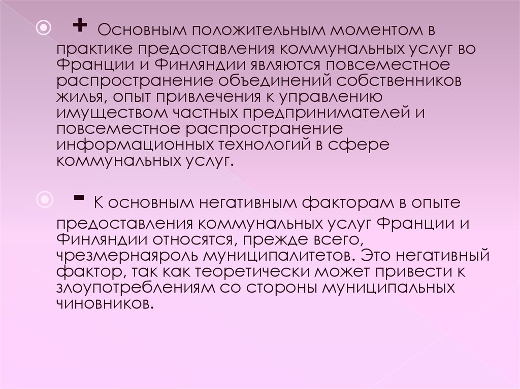 + Основным положительным моментом впрактике предоставления коммунальных услуг во