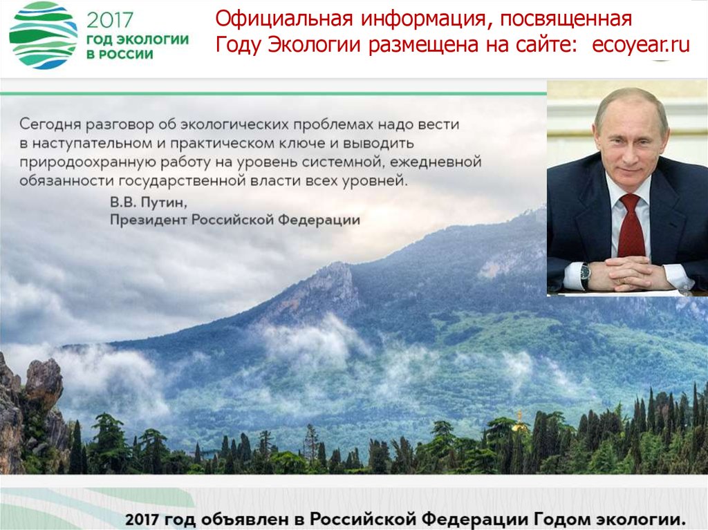 Официальная информация, посвященнаяГоду Экологии размещена на сайте: ecoyear.ru